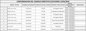 El día 15 de marzo de 2024 fue constituido el Consejo Directivo del Instituto de Ingeniería y Ciencias Aplicadas a la Industria, a partir de las elecciones llevadas a cabo el día 13 de Marzo de 2024, con un total de 21 votos de 24 integrantes empadronados. El Consejo quedó constituido de la siguiente manera: